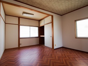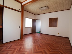 畳の傷みが大きかった部屋は、床をクッションフロア貼りにし和室から洋室の雰囲気に変更、綿壁だった壁もクロス貼りにする事で明るくすっきりした雰囲気に変わりました。