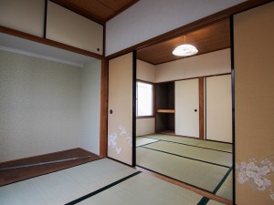 - クロス一部貼り替え、畳表替、和室にCF貼り、設備機器交換、襖・戸襖の一部張替など