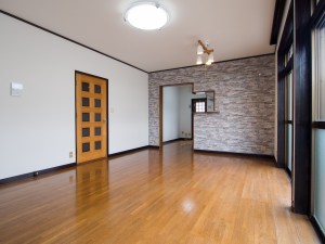 リビングダイニングはクロスを一新し、キッチン側にアクセントクロスを入れました。