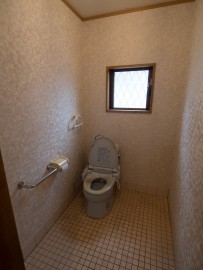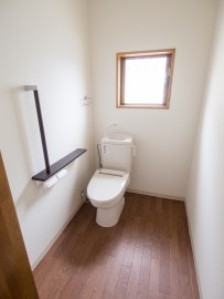 トイレは段差があり、タイルの床だったので、段差を無くしフラットにし、クッションフロアとクロスを貼り替えました。また、こちらも手すりを設置しました。