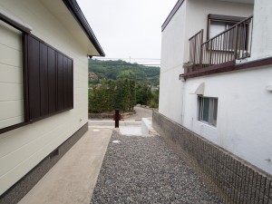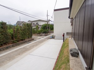 もともと塀で囲まれ、木が生い茂っていた庭は、広々とした駐車スペースへと生まれ変わりました。殺風景にならないよう、斜面には緑の芝を敷き詰めています。