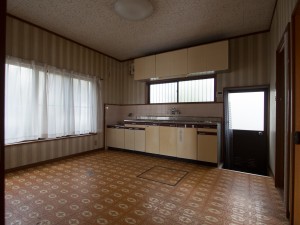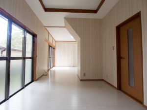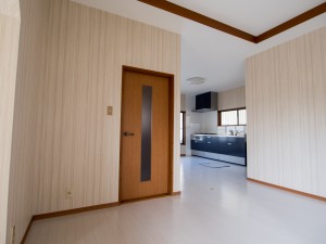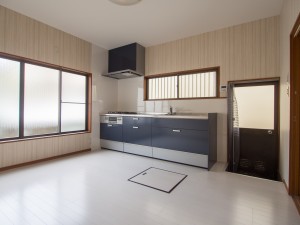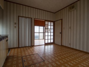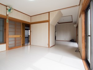 - 間取り変更(DK-洋室間の建具・垂れ壁撤去、洋室ー和室間の押入・壁撤去)和室→洋室、床の間押入を収納クローゼットに変更、キッチン入替、クロス貼替、フローリング貼替