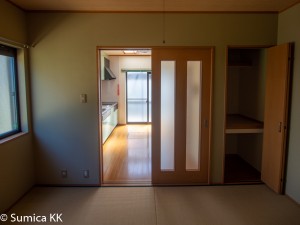 ダイニングはテーブルを置いたらそれでいっぱいになるし、隣接する部屋は和室だし・・・。ということで、隣接する2室を1室(風)にしました!